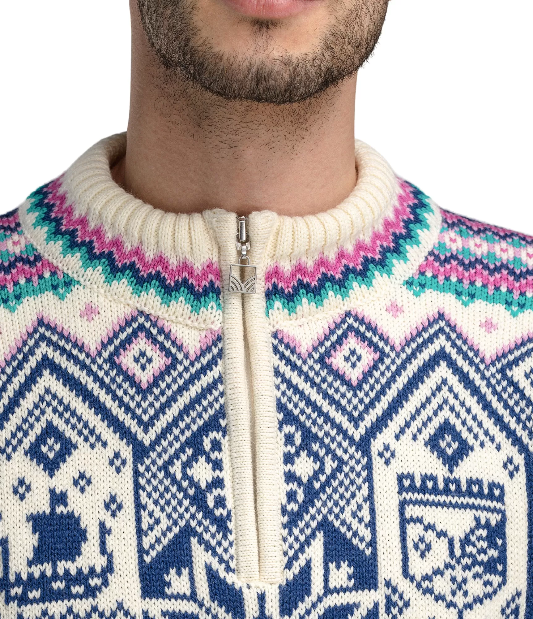 Ar rokām darināti vilnas džemperi, īpaši Dale of Norway modeļi, izceļas ar unikālu vilnas kvalitāti. Šajā džemperī ir izmantota 100% izturīga norvēģu vilna – dabīgs, elpojošs un īpaši nodilumizturīgs. Tā ir vilna, kas ilgstoši saglabā savu formu, elastību un mitruma izturību. Tas ir paredzēts ikdienas izvēlei neatkarīgi no laikapstākļiem – no šalt ziemas rītiem līdz vēsiem vasaras vakariem kalnos.