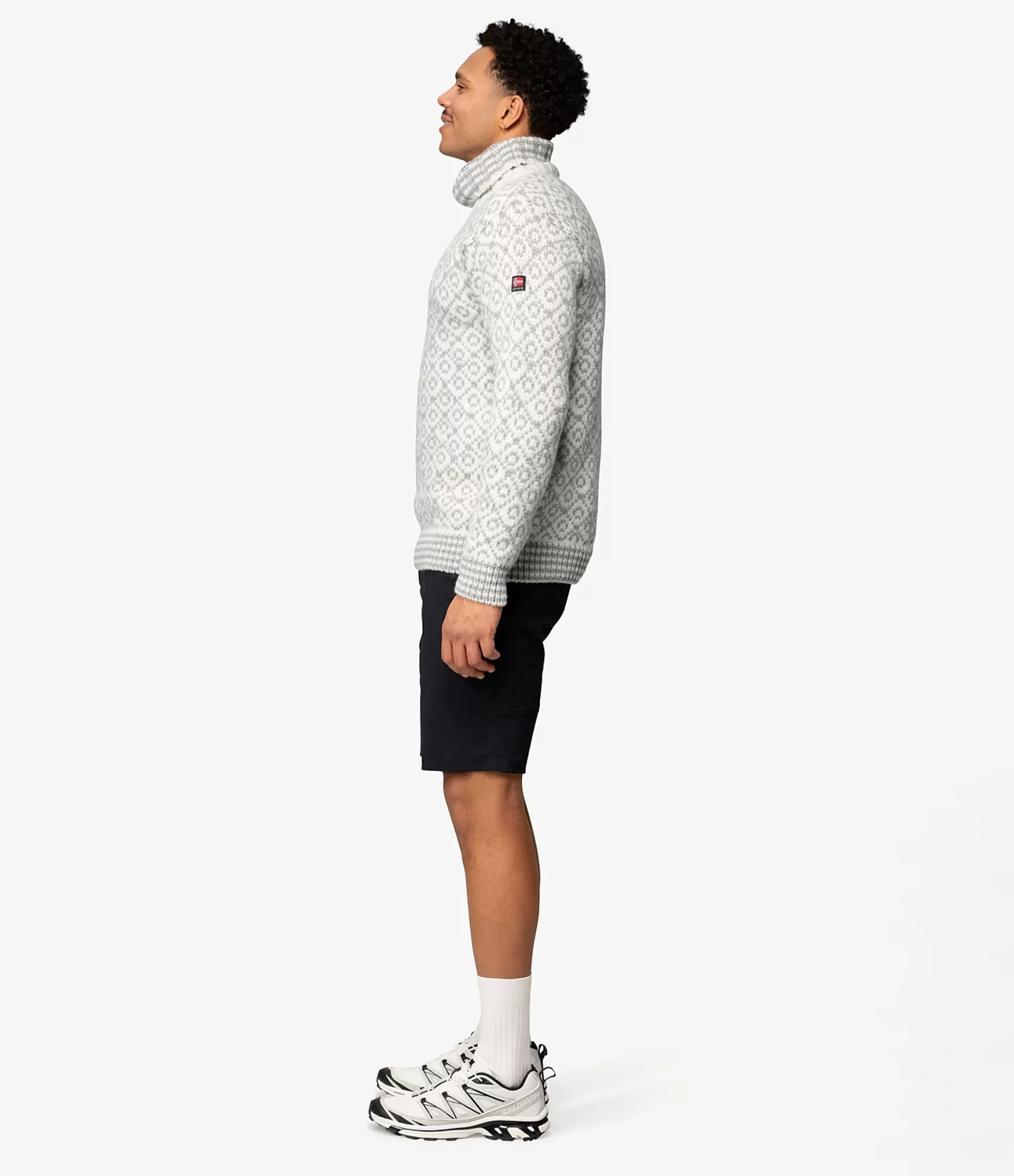 Norvēģijas aitu vilna, ko izmanto š džempera ražošanā, tiek uzskatīta par vienu no iš no spēcīgākajām un dabiskākajām vilnas krāsām pasaulē. Tās biezums – 32–36 mikroni – ir svarīgi, lai to raksturo īpaša pretestība un lieliska siltuma saglabāšana. Atšķirībā no plānākas merino vilnas, ši vilna ir veidota kā īsts šķērslis pret šalt. Tas elpo, uzsūc mitrumu un iztvaiko to, tāpēc arī aktīvi kustoties ķermenis paliek sauss. Turklāt, pateicoties vilnas dabiskajām antibakteriālajām īpašībām, džemperis neuzsūc nepatīkamas smakas, tāpēc tas jāmazgā retāk.