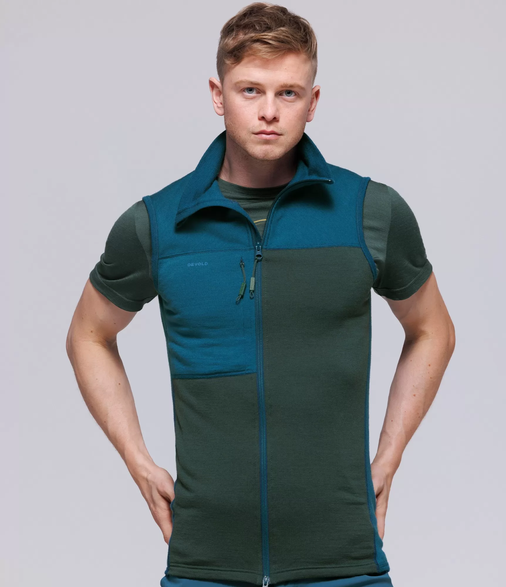 Devold Nibba Pro Merino veste – viens no universālākajiem apģērbiem vīrietim, kurš vēlas papildu siltuma slāni, brīvu kustību un maigu auduma pieskārienu. Veste ir izgatavota no 100 % merino vilnas, tāpēc tā ir īpaši mīksta un patīkama ādai. Viegls 210 g/m² audums nodrošina siltumu bez lieka apjoma, tāpēc šo vesti ir ērti valkāt gan kā virsējo slāni, gan kā vidējo termo slāni.