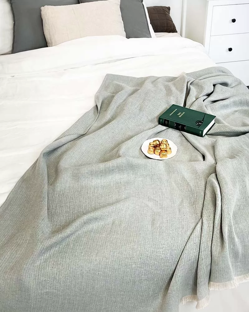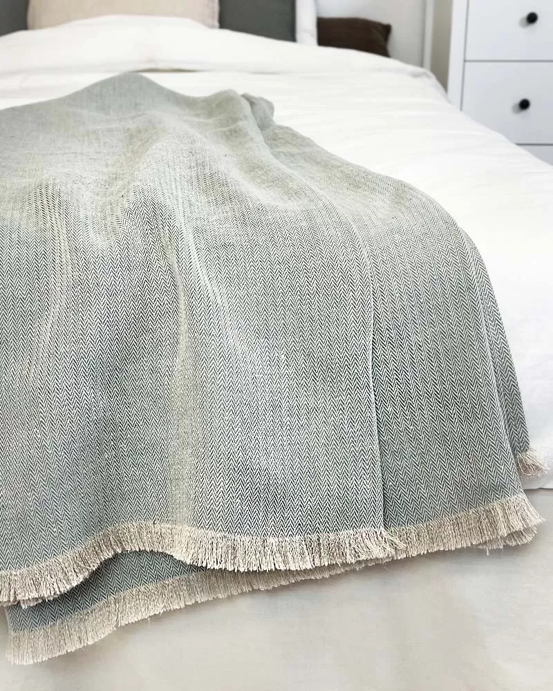 Pasteļkrāsas dabīgs, mīkstināts lina pleds izdaiļos jūsu māju un sniegs īpašu mājīgumu.