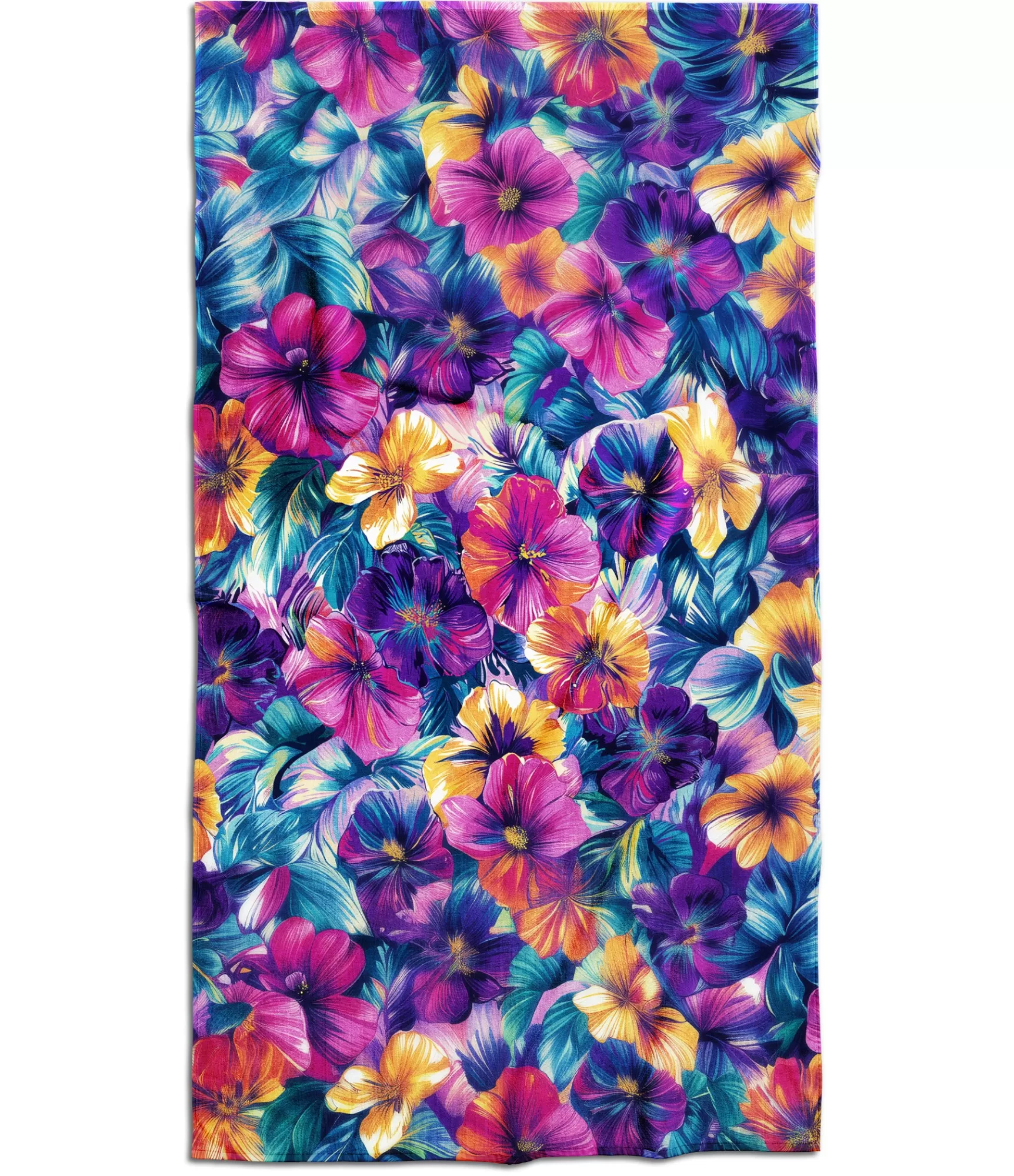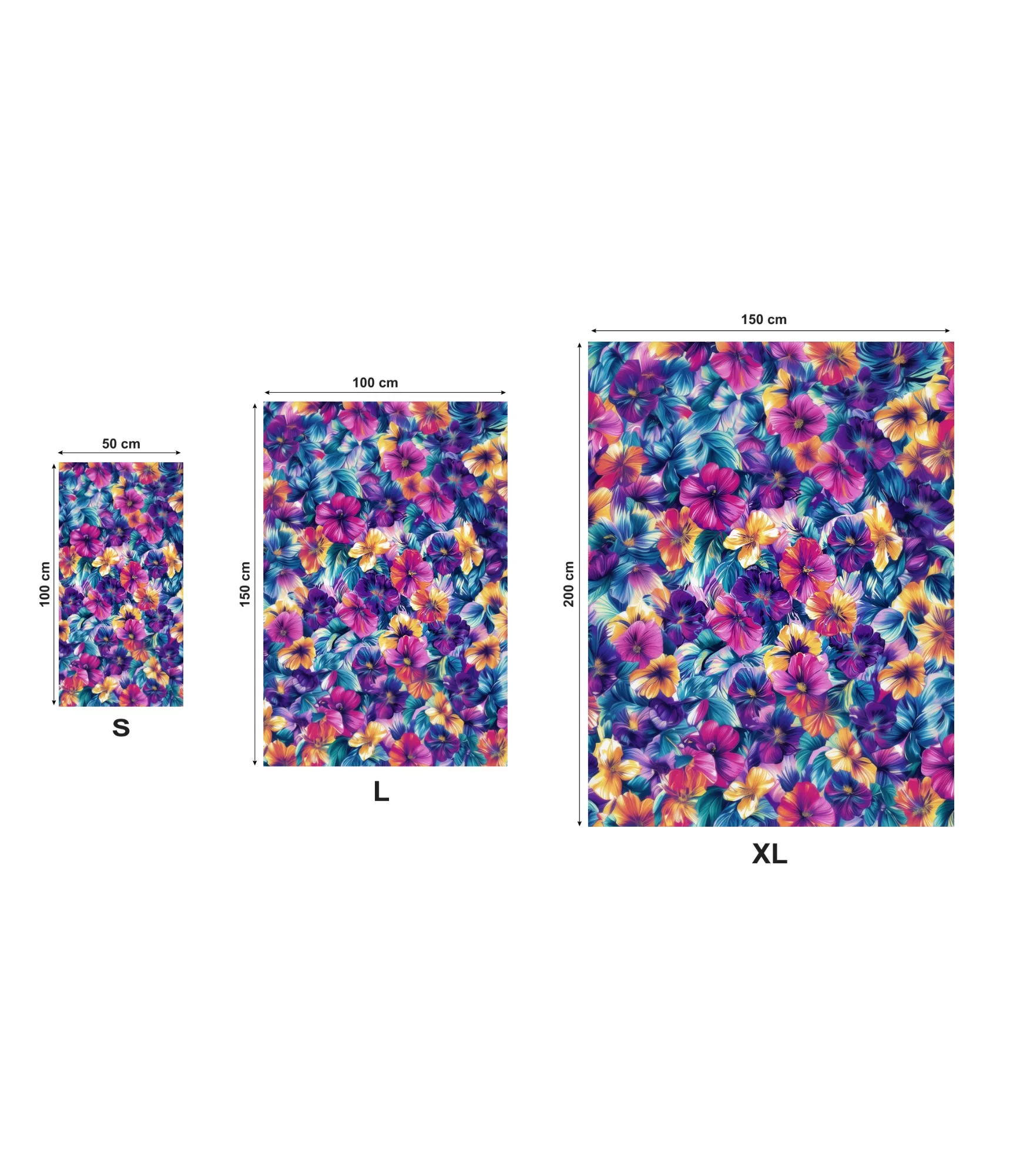 Šir spilgta, enerģiju pulsējoša rokašizskatās tā, it kā būtu apvienota arš tropu dārzs – ne tikai krāsu dēļ, bet arī tāpēc, ka tās izplatās pa visu virsmu. Ziedi šeit saplūst vienā nebeidzamā vasaras simfonijā: rozā, violeta, oranža, dzeltena ziedlapiņas kontrastē ar bagātīgi zaļām un zilganām lapām. Tie nav š ziedi vispār – tie uzsprāgst, iedegas, rada uzmanību. Katrs gredzens – tas ir kā atsevišķs stāsts, kas spīd saulē. Katra krāsa – atgādinājums par karstām dienām, pilnas ar smaržām un vieglu vēju. Šes daļēji pagatavoju iš gluds, spīdīgs poliesters, tāpēc visas krāsas paliek bez izbalēšanas, spilgtas, radītas, lai iepriecinātu. Otra puse – balts, ūdeles, izgatavots iš 100% kokvilna komfortam un lutināšanai pēc peldēšanas.