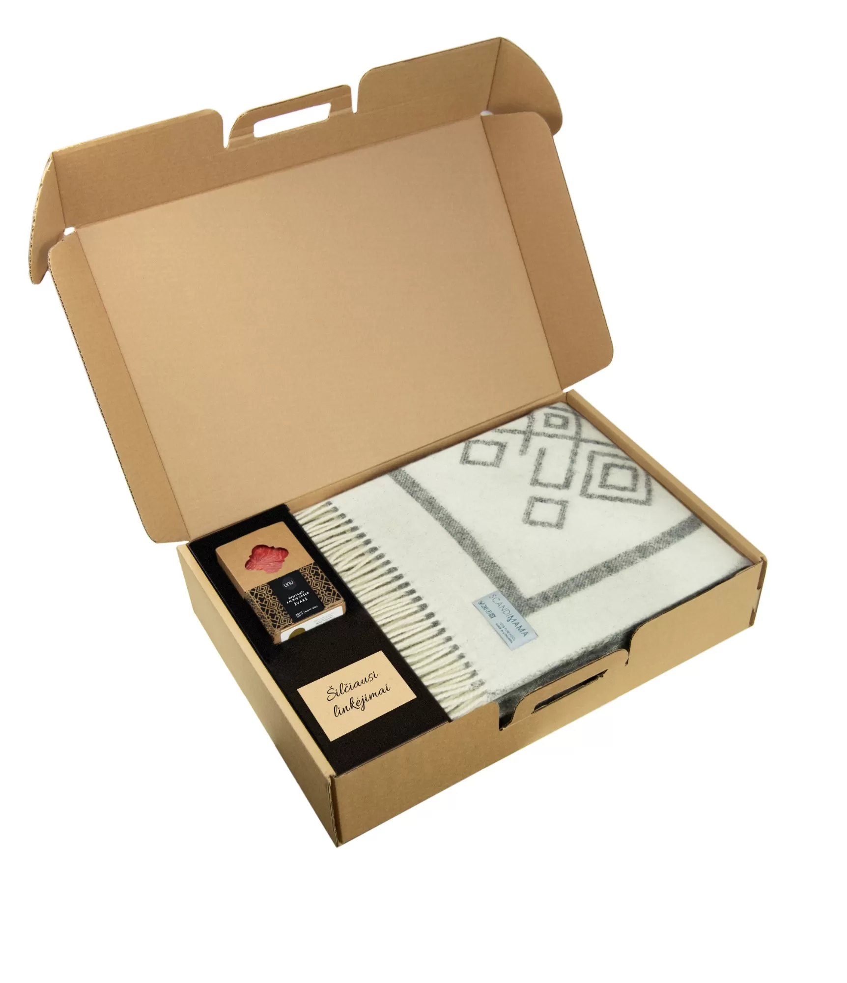 Vilnas pleda un smaržojošās sveces komplekts ir mājīga, silta un vienmēr noderīga dāvana, kas piešķir nozīmi dāvanai.