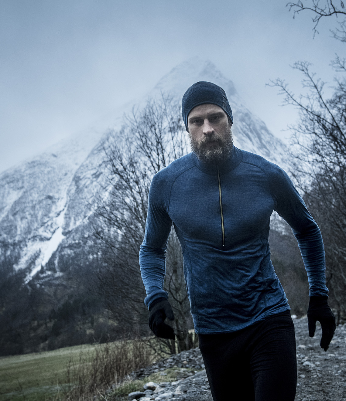 DEVOLD Running kolekcija. Īpaši viegls termo apģērbs sportam. Auduma sastāvā dominē merino vilna, kas uztur optimālu temperatūru, piemīt antibakteriālas īpašības un spēj absorbēt līdz 35% proc. sava mitruma svaru. Ideāls apģērbs sportam. Individuālajiem sporta veidiem un aktivitātēm var izveidot dažādus audumu sastāvus.